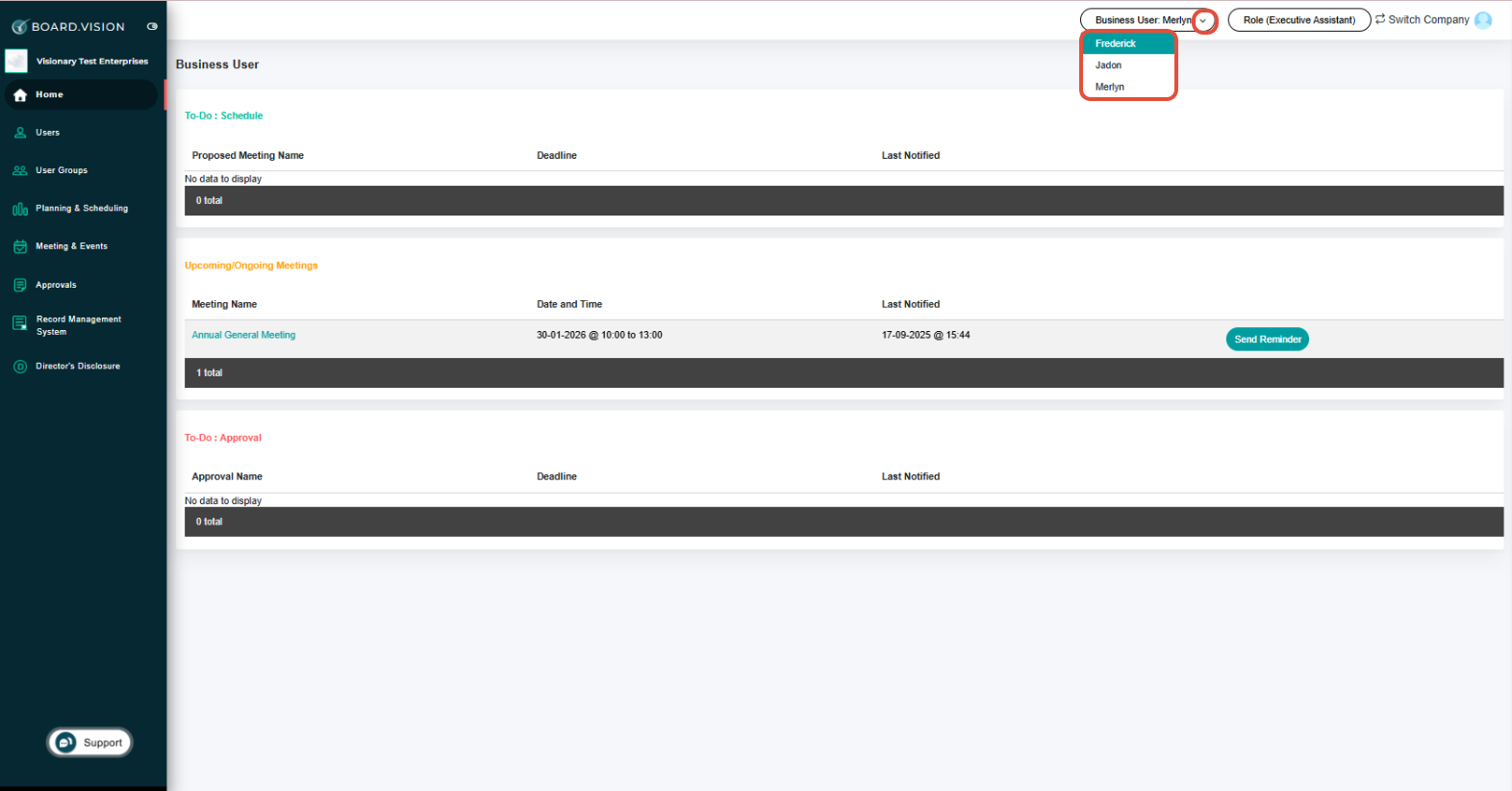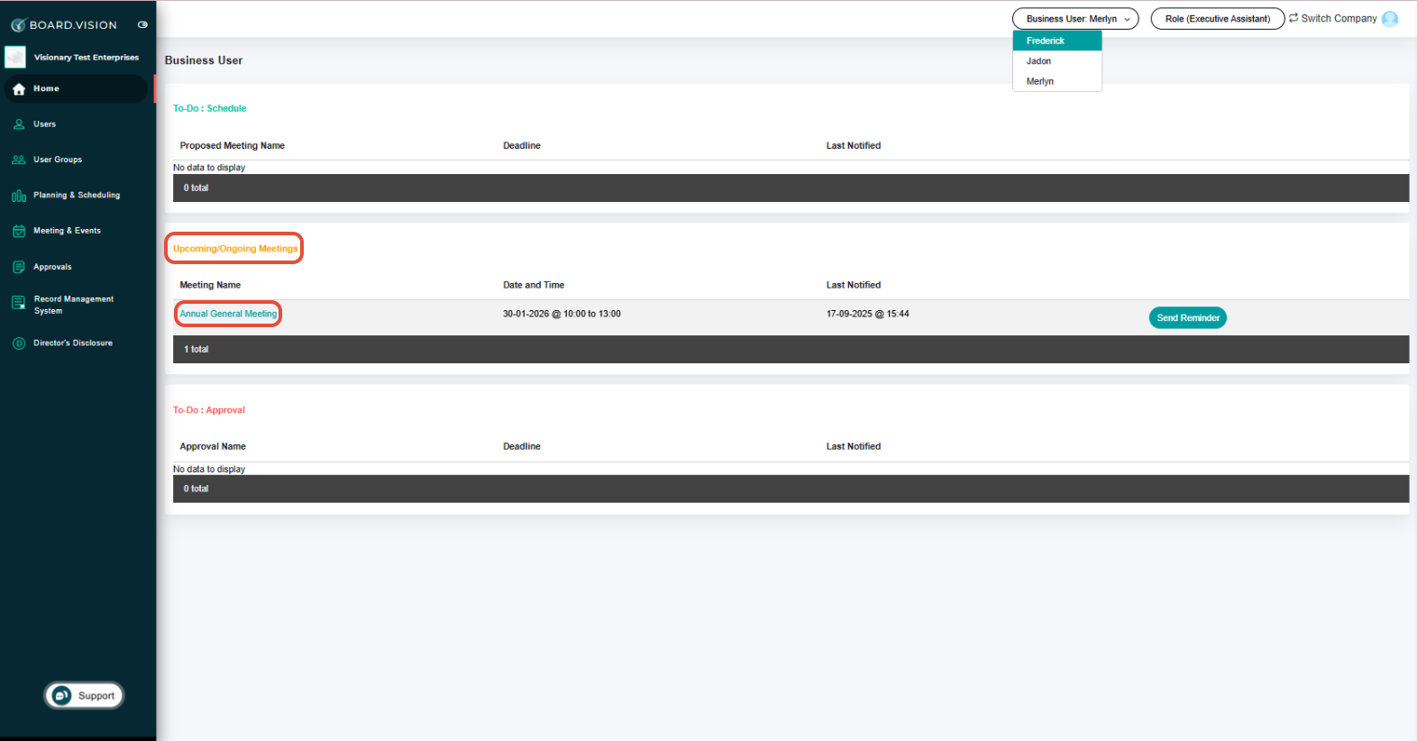1) From this screen, you can also notify your Director of the upcoming meeting by clicking on Send Reminder at the top right of your screen.