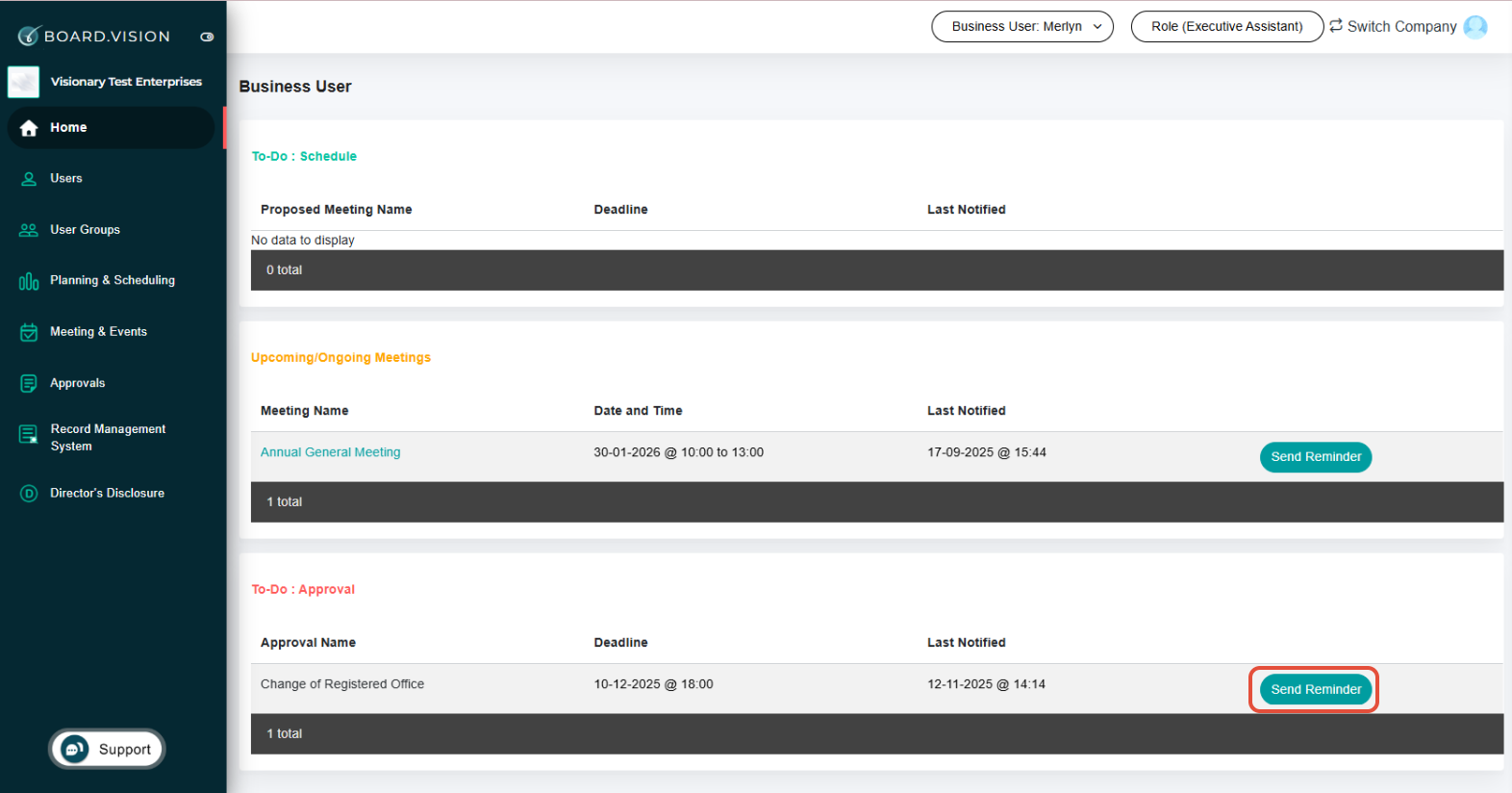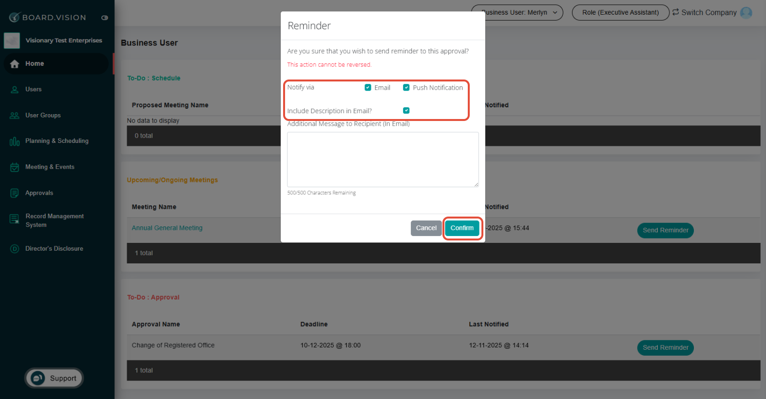 Welcome to Board.Vision Tutorials. In this tutorial, we will walk you through the steps to send a reminder to your Director to act on an Approval.