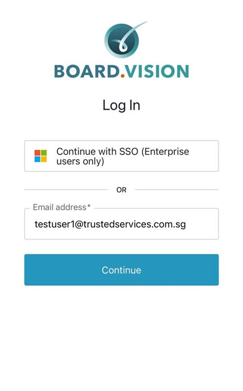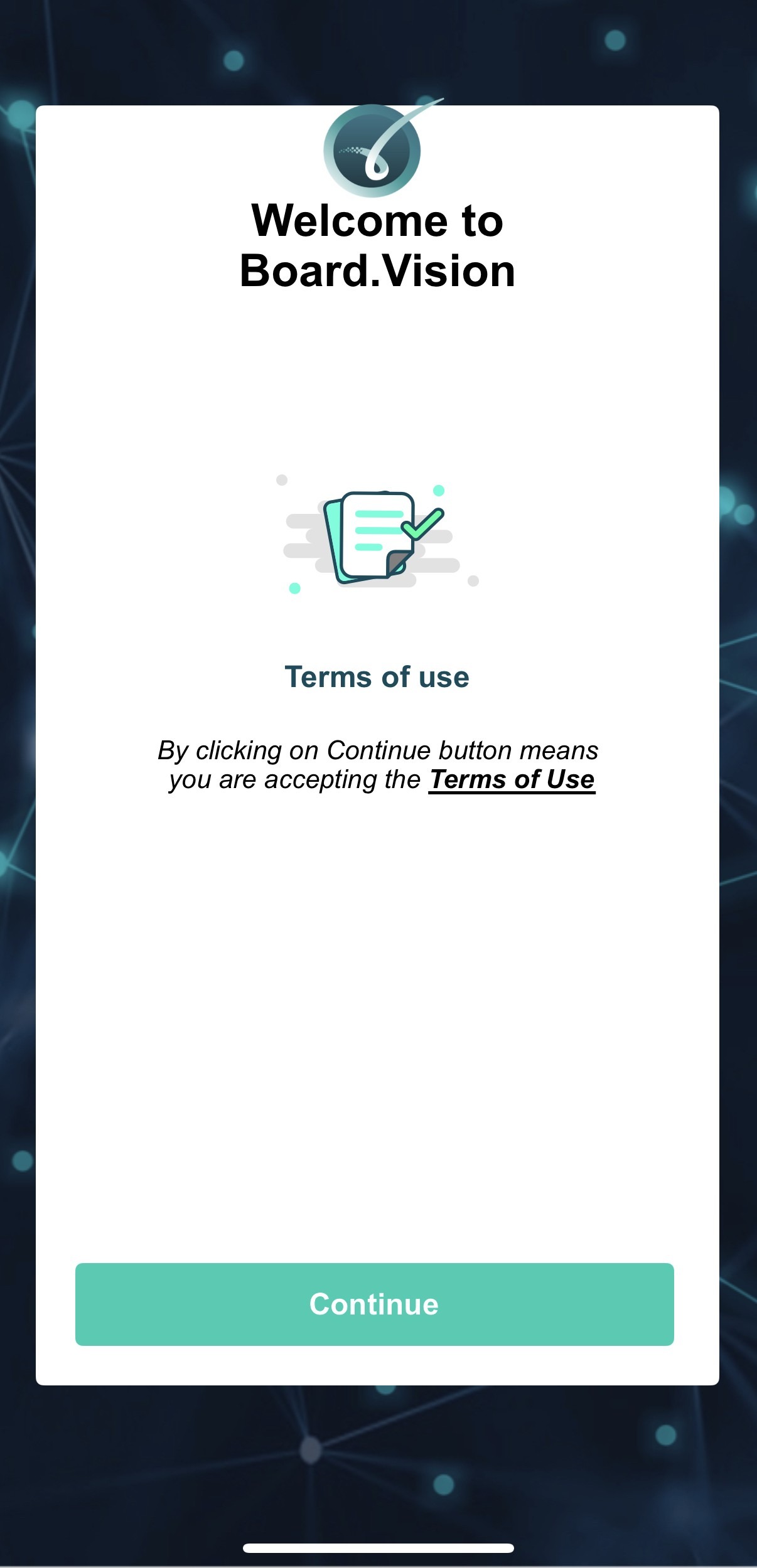 5) Tap on the ‘Agree and Continue’ button to accept the Board.Vision Terms of Use.