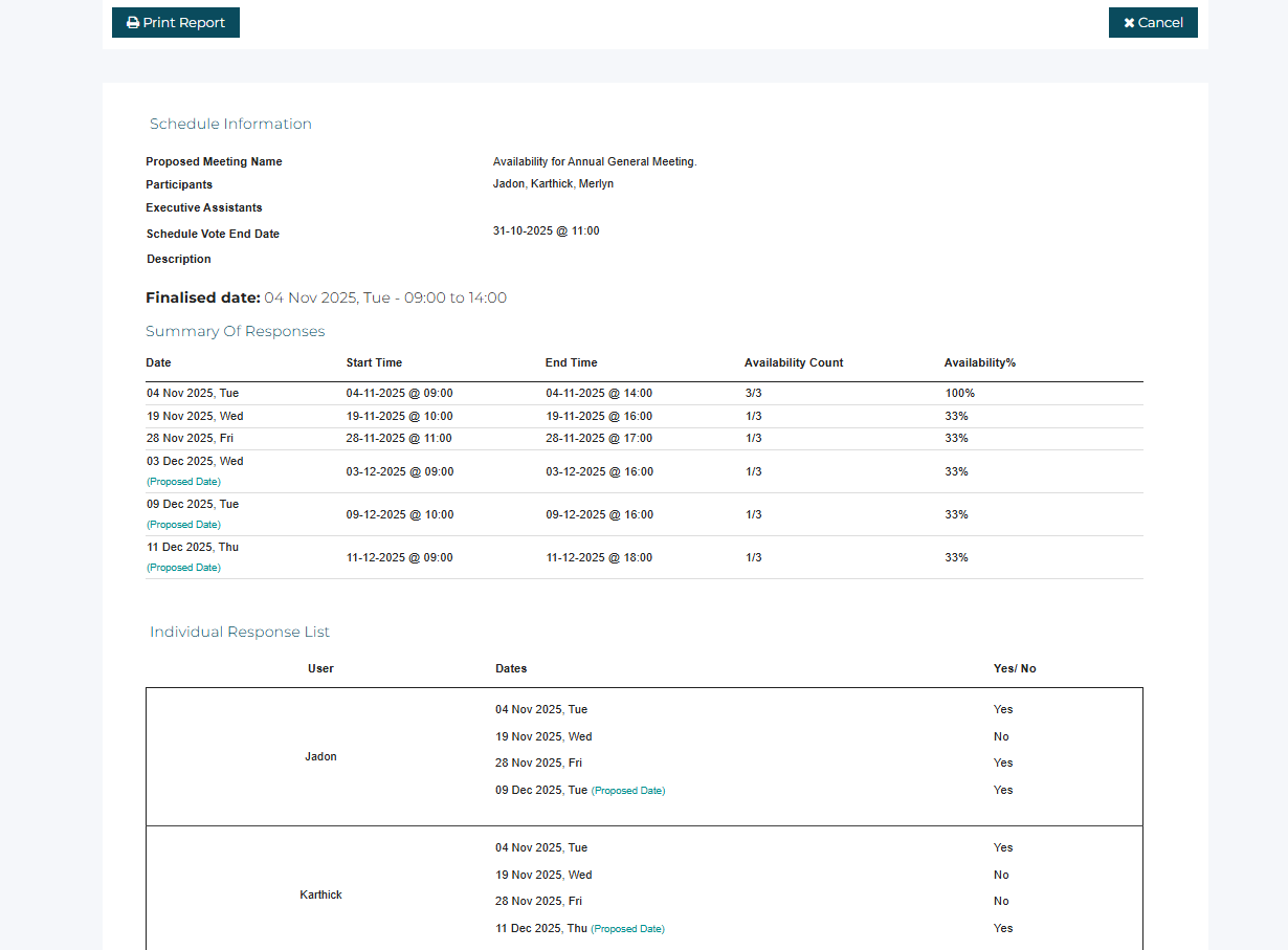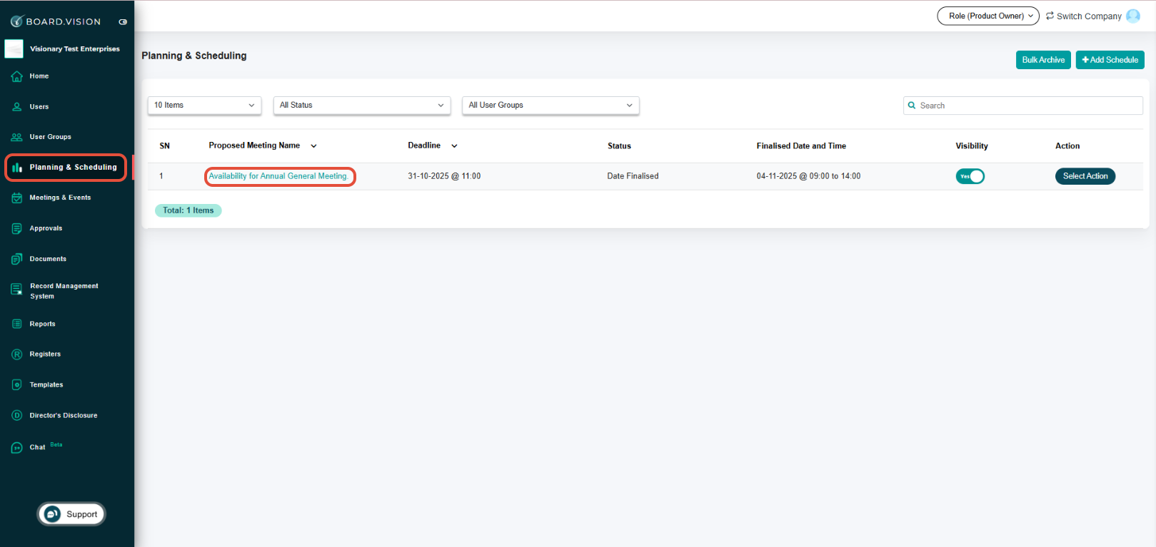 2) From the left navigation menu, go to Planning & Scheduling, and click on the Proposed Meeting Name with a Date Finalised status.