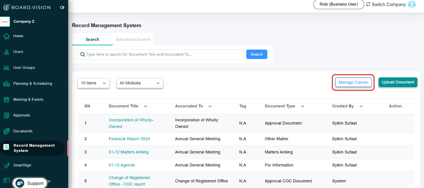 This gives you the flexibility to organise how your documents are displayed. You can choose which columns you want to see and even reorder them so the list appears in the way that works best for you.