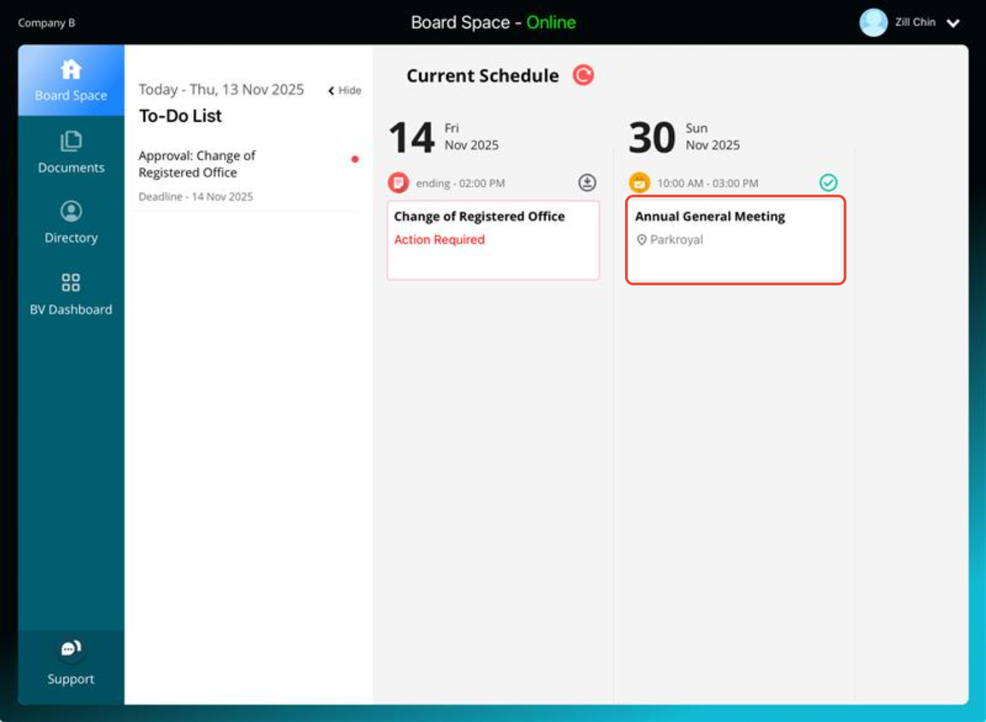 Current Design - When a push notification is tapped, users are taken directly to the relevant Approval document or Meeting details within Board.Vision, eliminating the need to navigate through the Board Space. | ![]() |