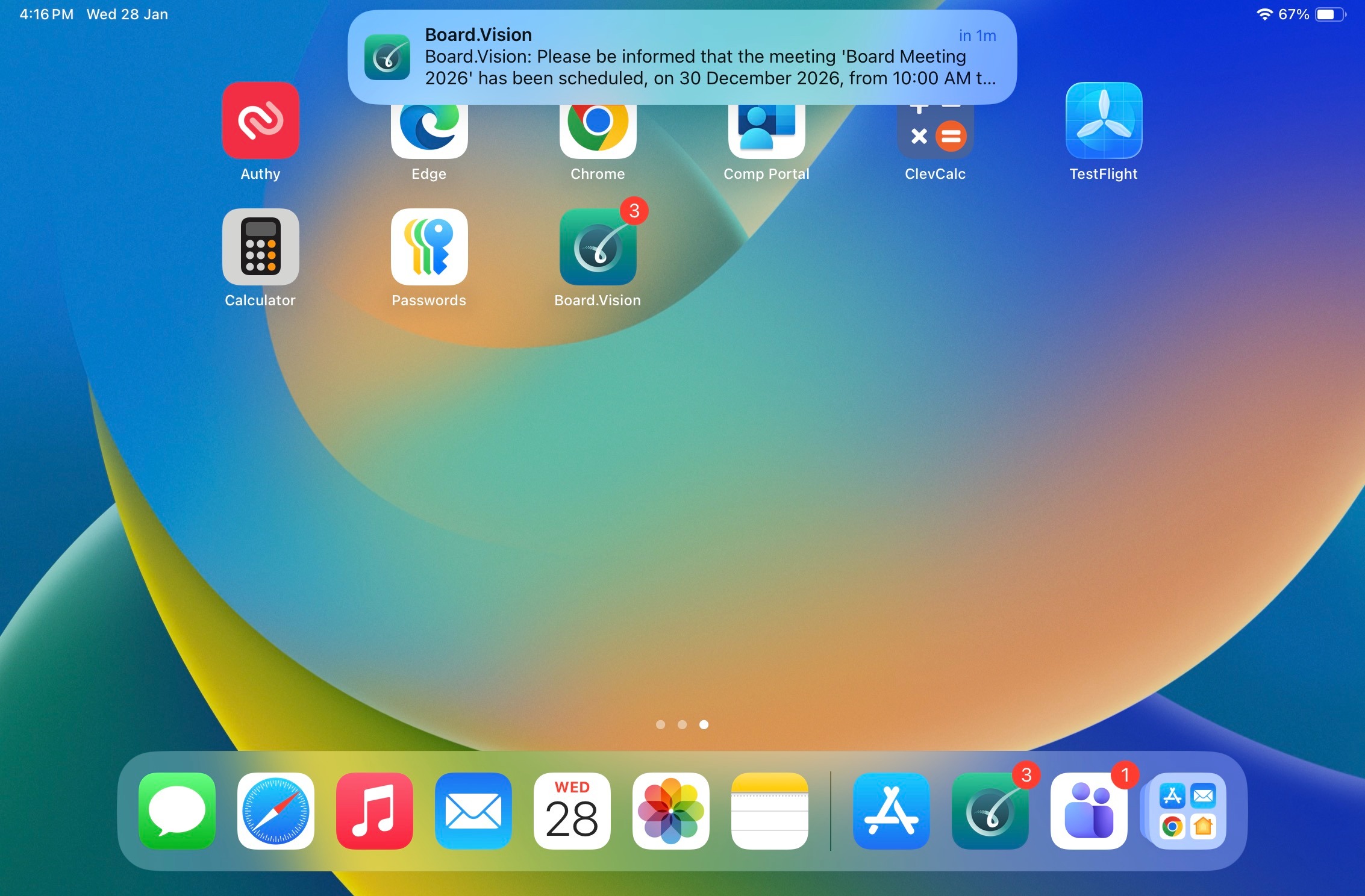 We have enhanced the push notification experience on iPad. Users can now tap a Board.Vision push notification to open the relevant Approval document or Meeting event directly within Board.Vision for immediate action.